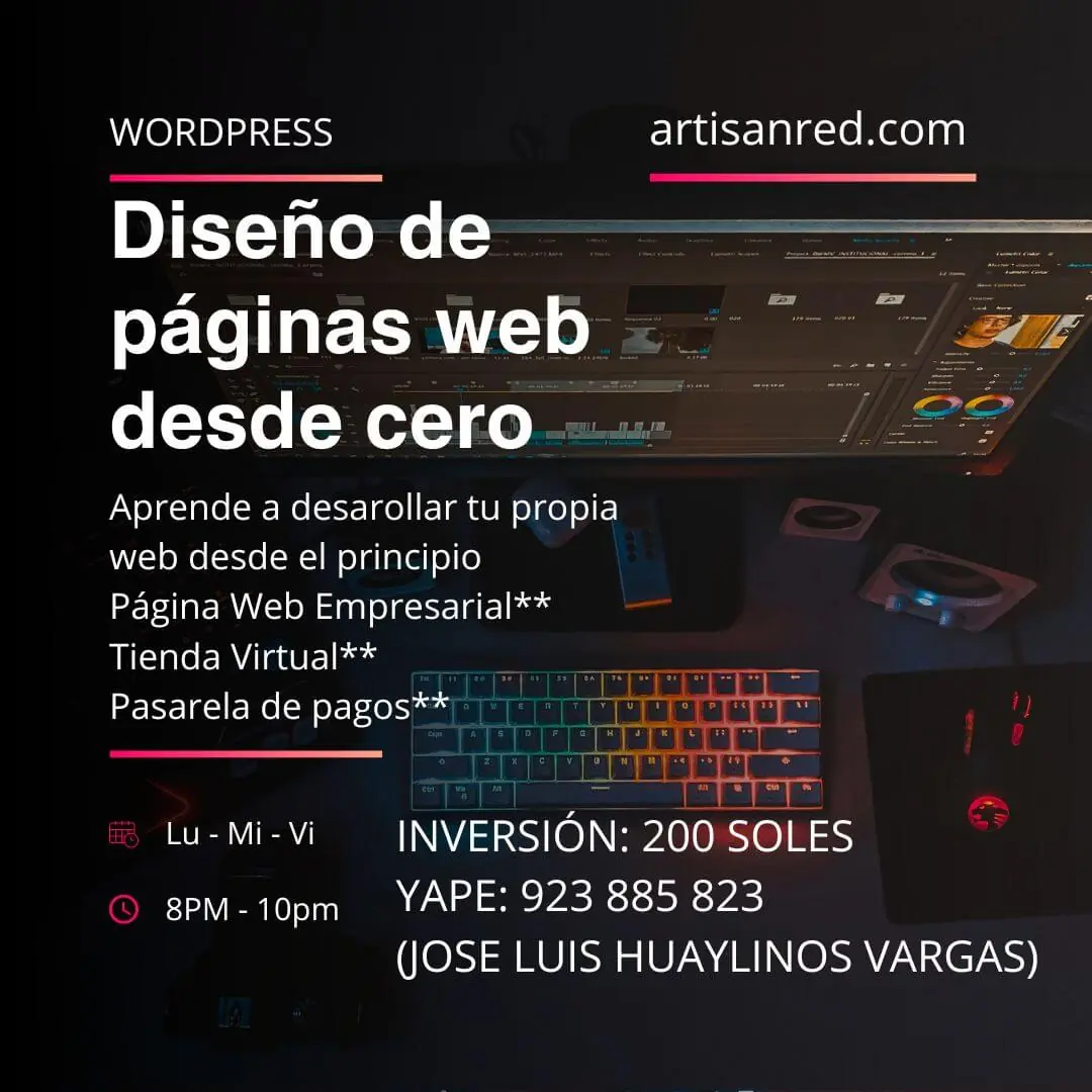 No necesitas ningún conocimiento previo, yo te llevaré desde las bases hasta un conocimiento funcional en wordpress, realizando webs reales durante el curso